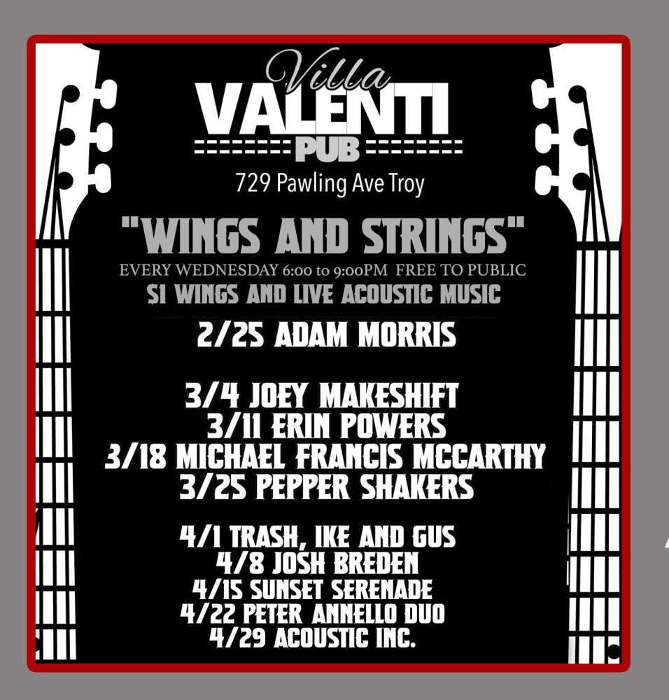 WINGS AND STRINGS Villa Valenti Pub Every Wednesday