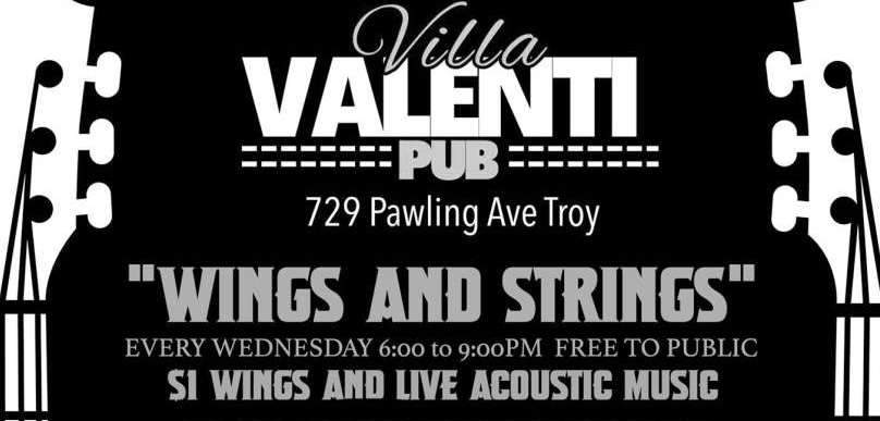 WINGS AND STRINGS Villa Valenti Pub Every Wednesday Villa Valenti Pub Troy Free shows / $1 wings Wednesday nights 6-9 pm April 15 Sunset Seranade duo Ap...