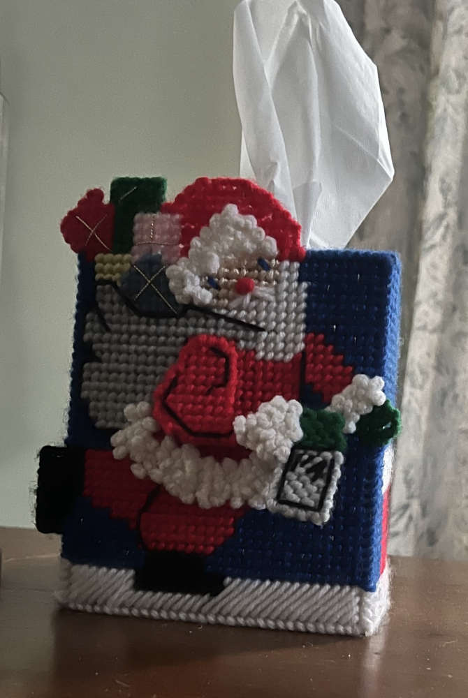 Just in case you’re worried about your tissue box getting cold this winter season. You can make yourself a nice knitted, needle point or hand stitched deformed Santa Claus tissue box holder, it keeps your tissues, nice and warm.